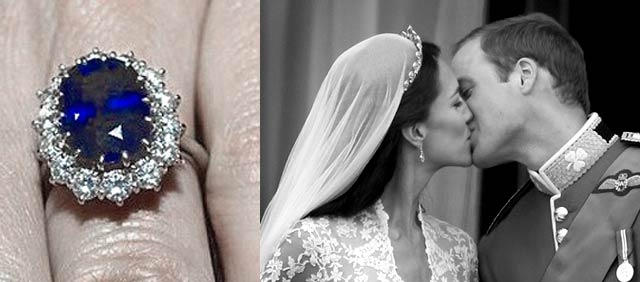 Qualche mese fa il principe William ha donato alla promessa sposa Kate Middleton l’anello di fidanzamento della madre, Lady Diana. L’anello, di tipologia a margherita, è formato da uno zaffiro circondato da 14 diamanti.