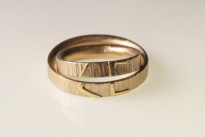 Eva e gli sposi sono ripartiti da zero con la progettazione, insieme, e hanno concepito due fedi nuziali concettuali bicolore: dentro oro bianco, fuori oro giallo! Inoltre gli anelli presentano...