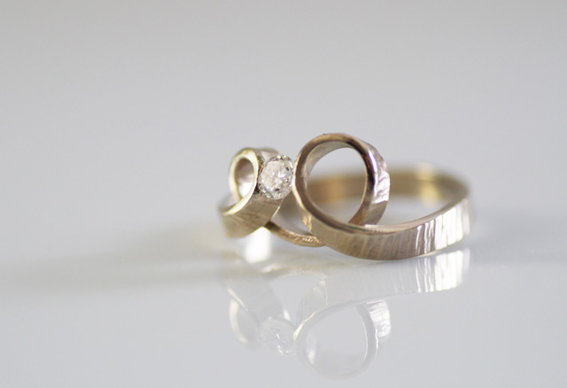 Tre anelli personalizzati con forme molto diverse, creati a mano da Eva.