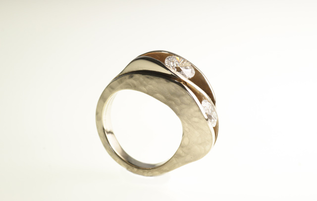 Tobia è architetto e fin da subito ha voluto partecipare attivamente alla creazione dell’anello di fidanzamento per la sua ragazza. Con enorme entusiasmo mi ha proposto alcuni disegni che abbiamo rivisto insieme, abbiamo studiato la fattibilità ed i limiti di esecuzione. La fase di progettazione è stata particolrmente lunga perchè Tobia ha scelto di usare due diamanti ovali di dimensioni diverse.