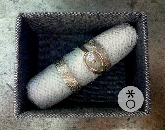Abbinare l’anello nuziale all’anello di fidanzamento è possibile ma bisogna considerare qualche aspetto tecnico. Coppia di anelli matrimoniali personalizzati, creati da Eva.