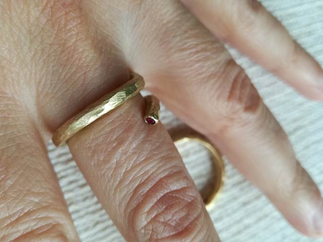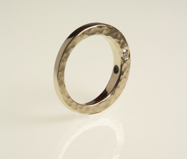 In effetti, forse noi italiani abbiamo un po’ abusato del termine, estendendolo a tutti i manufatti provenienti da regioni esotiche, dal Sud del mondo e dall’Oriente, e finendo per fare un po’ di confusione. Quindi se un cliente mi chiede un anello di fidanzamento etnico cerco subito di capire che idea ha in mente facendogli qualche domanda: è sempre un momento molto divertente ed emozionante, comincia lì l’attività creativa. I gioielli etnici si distinguono da quelli classici per i materiali, le lavorazioni e le forme, ma è ovvio che quando si parla di anelli di fidanzamento l’unico materiale possibile è l’oro! Quindi in questo caso gli anelli etnici sono tali perché le loro forme richiamano quelle tipiche di una certa area geografica e perché hanno una lavorazione particolare. Per esempio, per Angela ho realizzato una fedina in oro bianco a sezione quadrata con un cilindretto di ebano inserito al posto del diamante. Una forma lineare e pulita, sobria e allo stesso tempo di grande effetto.